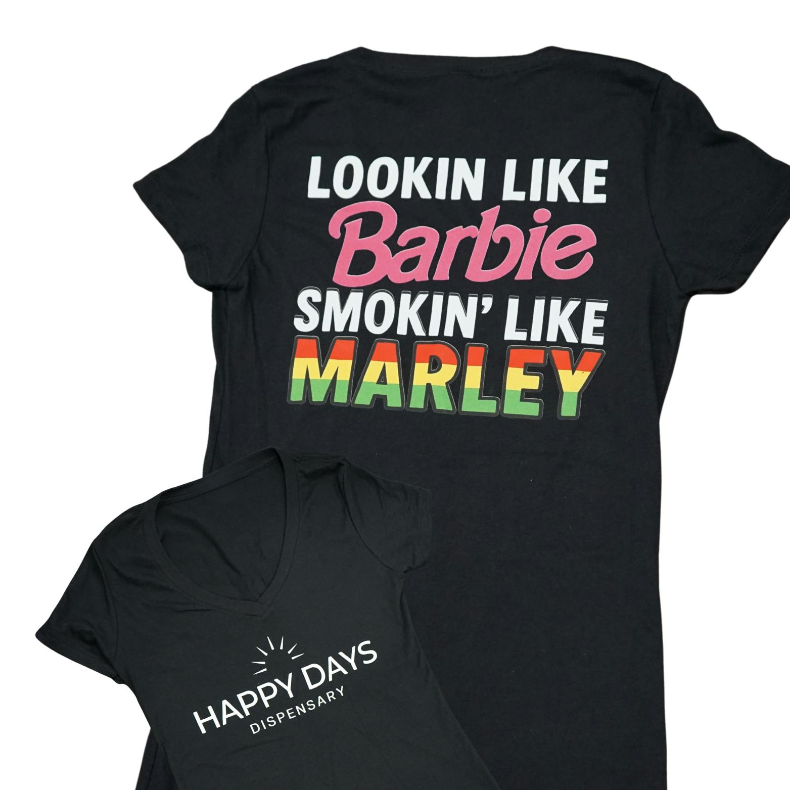 Happy Days Short Sleeve V-Neck | Barbie/Marley | Black-L