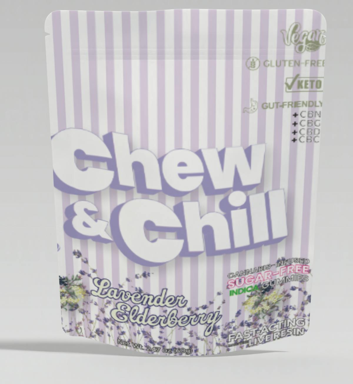 Lavender Elderberry | Sugar Free Fast Acting Live Resin 10pk | 10mg THC: 5mg CBN: 5mg CBD: 5mg CBG: 5mg CBC